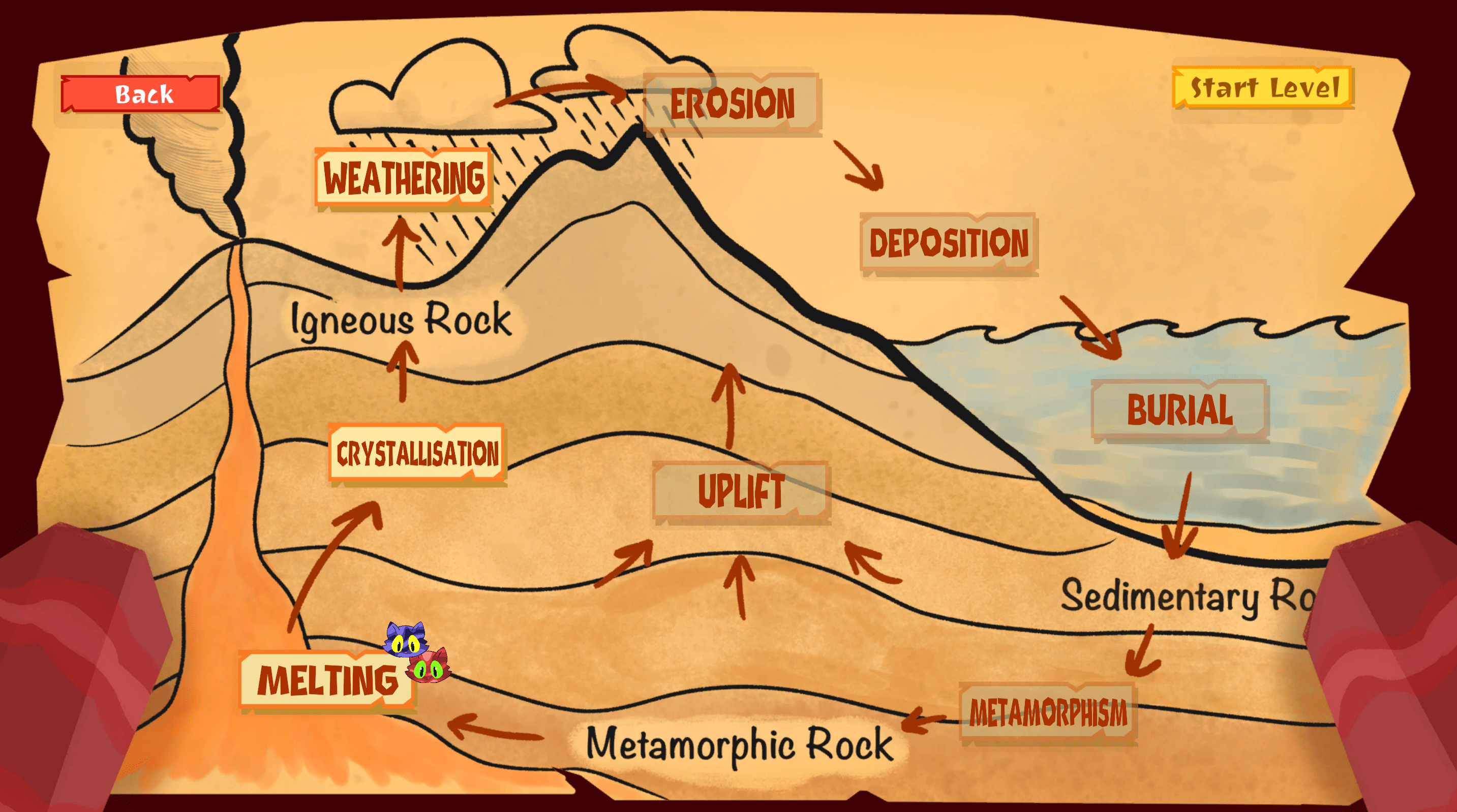 Educational adventure that teaches the rock cycle through fun transformations and mechanics.